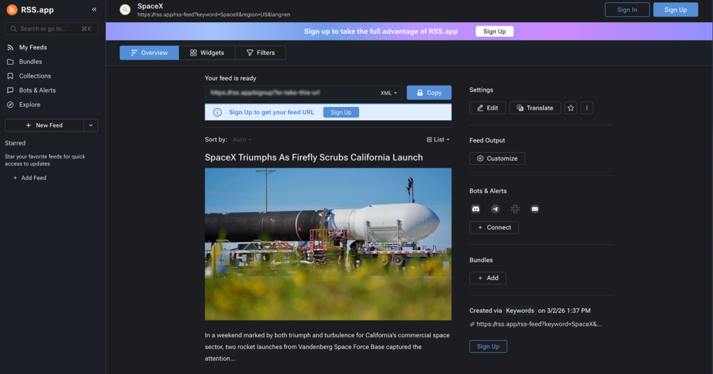 Tools such as RSS Lookup or Feed Finder let you paste a website URL and see a list of available feeds. Simply submit the URL, and the service checks for known feed paths and HTML tags, then returns whatever exists. This is useful when you’re on a mobile device without a code‑viewing option, or when you want to batch‑check a list of sites. Some tools can even surface feeds that the site doesn’t advertise in the UI, such as “this category” or “this tag” feeds. - Keyword‑based feed finders (RSSfinder.app)
